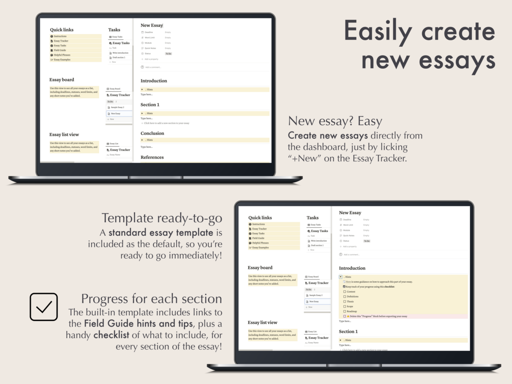 — Built-in essay template which includes the core elements of good essay structure, plus a checklist to ensure you've ticked all the boxes for each main section of your essay.