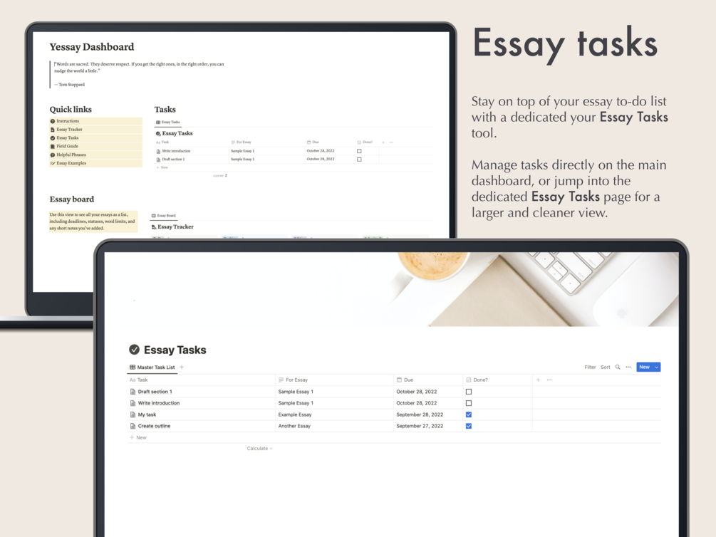 — Add and manage your essay tasks to stay on top of your essay to-do list.